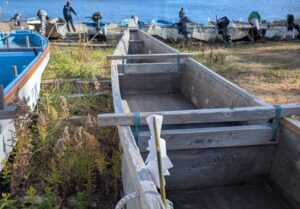 小さな漁港では、なんと現役の木造船が何艘も。